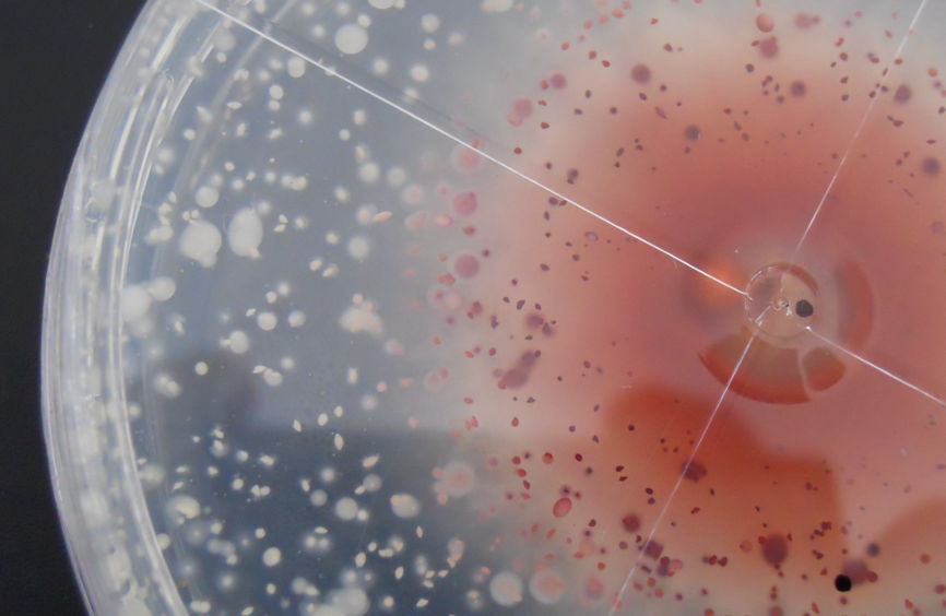 Se observa como el hongo (mancha roja) se expande despues de 48 horas